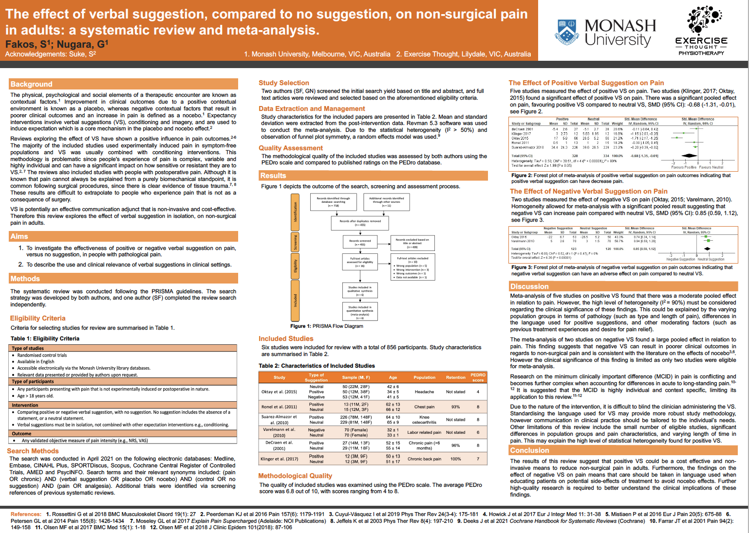 compared to no suggestion, on acute pain in routine clinical settings: a systematic review and meat-analysis.