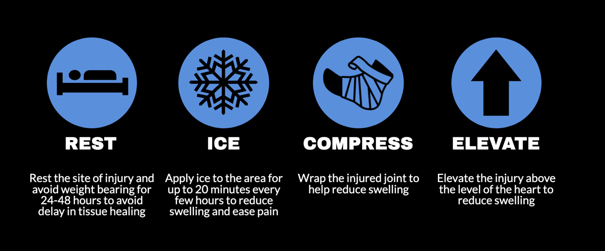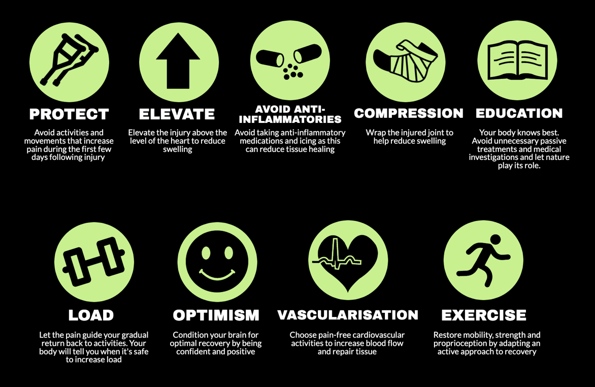 Over the years there have been many acronyms that have helped guide the management of soft tissue injuries - from ICE, RICE, PRICE and POLICE. The RICE acronym being the most widely known which involves: